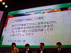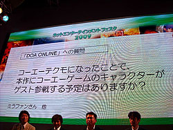 その後イベントは,このネットエンターテインメントフェスタの定番コーナーともいえる「プロデューサーに訊け!」へと移った。これは事前に寄せられたコーエーオンラインゲームのユーザーからの質問に,各プロデューサーが直接答えるというものだ。以下に挙げられた質問とその返答を列記していこう。